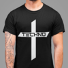 Taglio oversize o regolare Un giallo brillante Technostoff-Il logo adorna il retro di questa maglietta. Esso emette fluorescenza sotto la luce UV e garantisce la luminosità perfetta sulla pista da ballo. Nils è alto 191 CM e indossa sovradimensionato L.Malin...